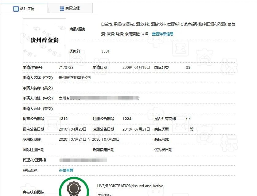 2012年,贵州醇酒业有限公司通过转让方式取得第7173723号“贵州醇金贵”注册商标所有权。被告在使用的白酒的瓶体正前方上部分印有“贵州醇”三个字,中下端单独印有“金贵”二字。