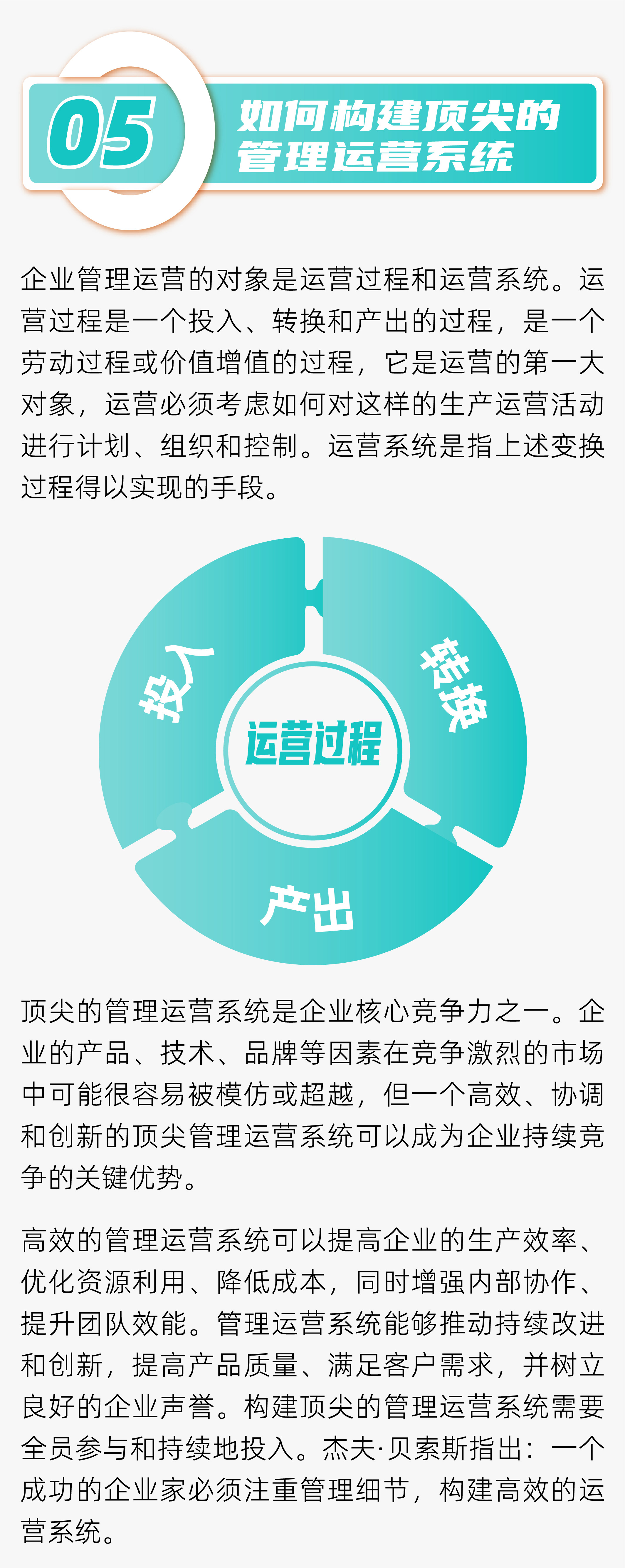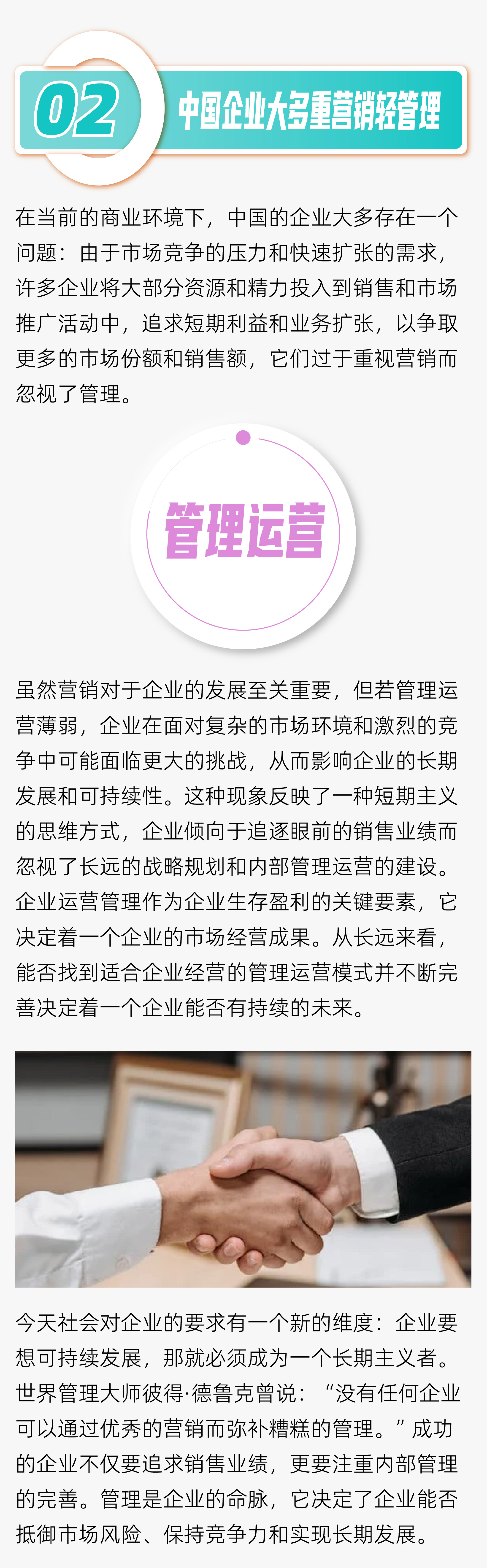 企业的衰败往往是从管理运营的薄弱开始的。很多企业管理薄弱、运营不畅,从而导致企业运营效率低下、成本控制不力,很难推动企业可持续发展。在本篇专题中,我们将深入分析企业管理运营中的常见问题,如流程繁琐、决策迟缓、沟通不畅等。并通过案例研究,介绍先进的管理理念和方法,如精益管理、敏捷管理等,希望帮助企业从组织结构到流程优化,打造高效能的管理运营体系。同时,还将探讨如何通过企业文化建设、团队建设等方式提升企业的整体管理水平。因此本章专题的核心关键词是“提升”。