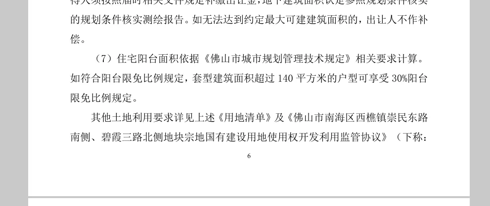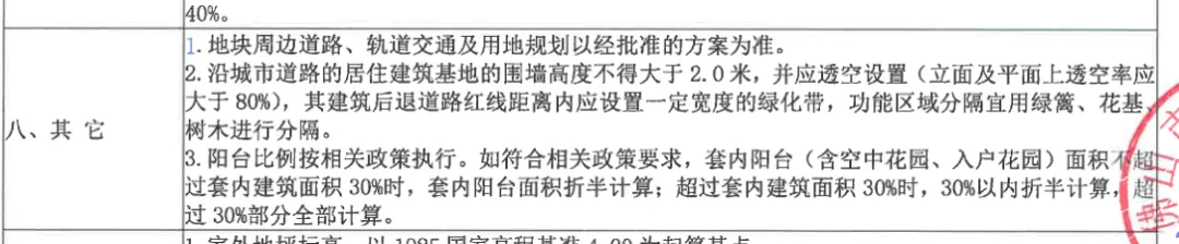 出让文件显示,该地块套型建筑面积超过 140 平方米的户型可享受30%阳台限免比例规定。