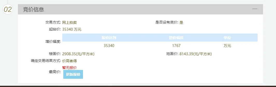 该地块共43397平,容积率≥1.5且≤2.8,建筑密度≤25%。地块起拍价约35340万元,折合楼面价约2908元/平。
