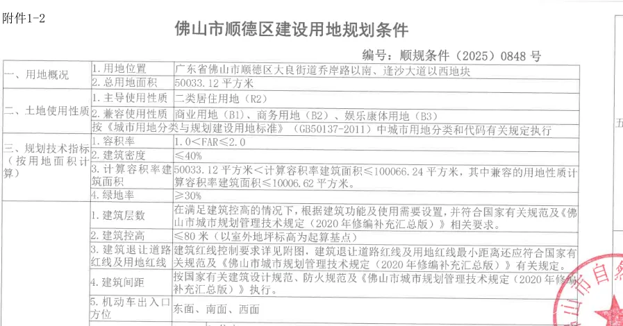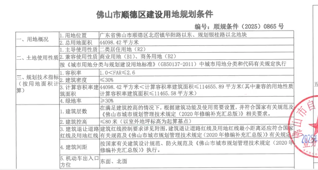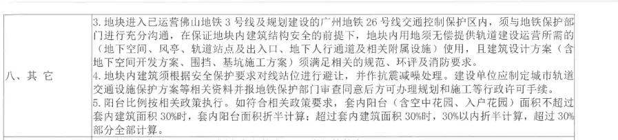 出让文件还指出,地块进入已运营佛山地铁3号线及规划建设的广州地铁26号线交通控制保护区内,须与地铁部门进行充分沟通。
