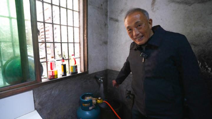 家里喝上浙江自来水的江西玉山村民杨乾才很开心