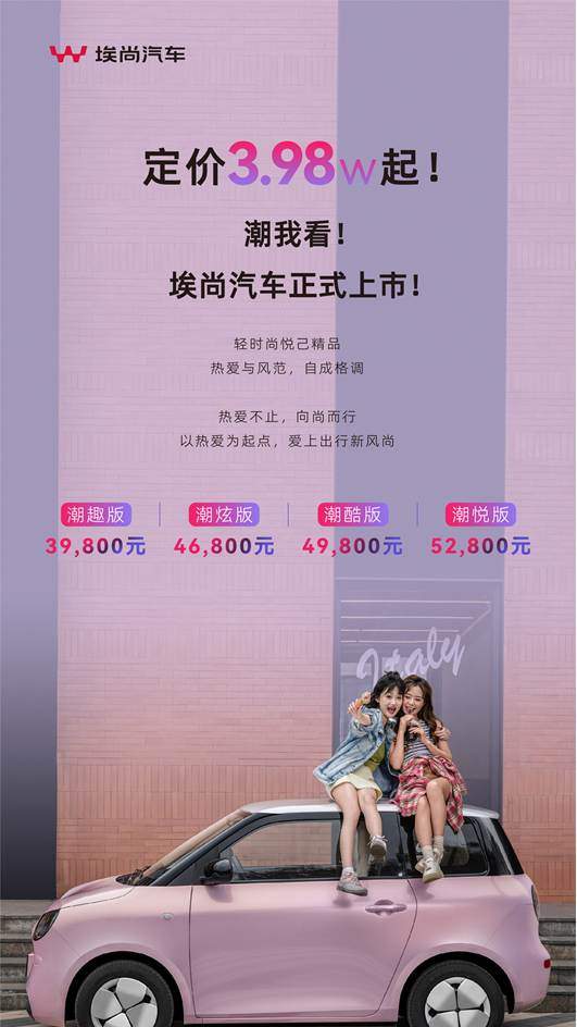 秉持“热爱、自信、创进、愉悦”的精神,埃尚汽车始终以用户需求为导向,通过自主研发的三电系统与严苛品控体系,为广大用户提供安全便捷的高品价产品。埃尚汽车始终专注于经济型新能源乘用车赛道,专注于AOO级、AO级和A级乘用车细分市场,构建完整产品矩阵,满足不同消费者的多元化购车需求。未来,埃尚也将持续以技术创享为驱动,全力赋能美好出行,致力于成为国民级轻时尚出行标杆。