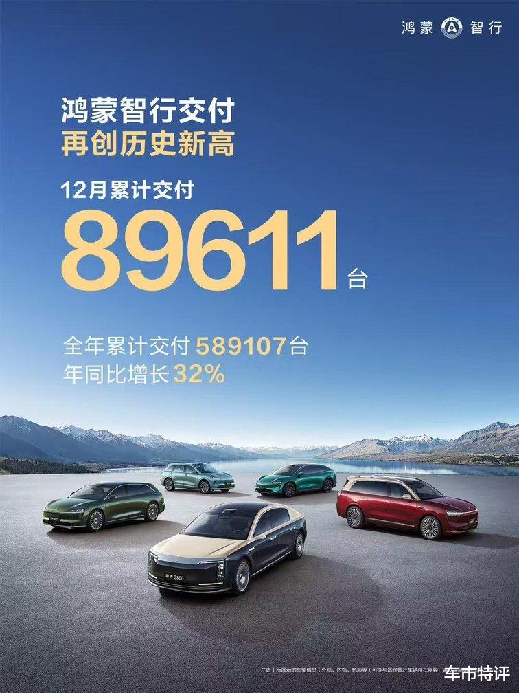 鸿蒙智行:12月销量89611辆,2025年累计销量589107辆