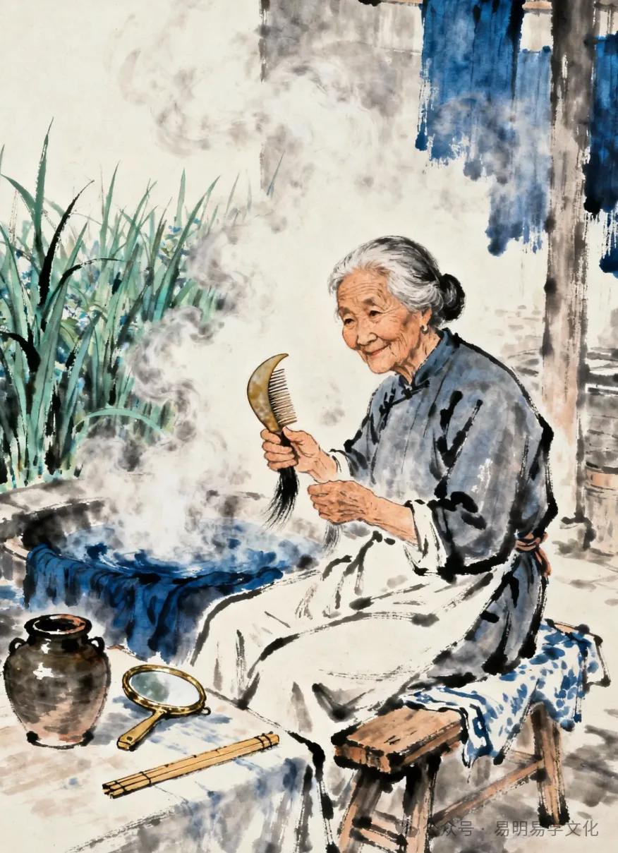 那年我十五,刚上高中,周末总爱往村北的染坊跑。外婆的“相摊”这回挪进了染坊后院,占了半间堆靛蓝草的小屋。屋里没有青石墩,只摆了张老周淘汰的染布凳,凳面沾着洗不净的靛蓝,像撒了把碾碎的蓝草花。桌上除了铜镜、竹尺,多了那把牛角梳和个粗瓷小罐,罐里装着猪油——不是吃的,是外婆给留须的汉子抹胡须用的,说“油润的胡须才聚气”。染坊的蒸汽混着艾草香飘进来,把外婆的声音都泡得发暖。