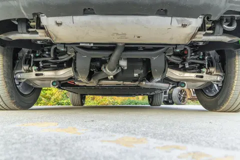 作为一款四驱车型,四驱探索版搭载了电动四驱系统,前后双电机布局能够根据路况实时调整动力分配,响应速度快,操控稳定性高。车辆接近角28°,离去角29°,最小离地间隙185mm,涉水深度达600mm,通过交叉轴落差能力为0.6m,足以应对轻中度越野场景。配备多种驾驶模式,包括运动、越野、雪地、ECO经济、标准舒适等,用户可根据路况一键切换,新手也能轻松驾驭。此外,车辆支持陡坡缓降(HDC)和上坡辅助(HAC),复杂地形下的安全性得以保障。底盘采用前麦弗逊式+后多连杆式独立悬挂,经过专业调校,能有效过滤路面小幅震动,提升越野时的舒适性。车身结构为承载式设计,整备质量2182kg,满载质量2597kg,结合高强度钢占比超80%和超高强度钢占比55%的材料应用,车体刚性极强。官方提到的冷门数据指出,底盘配备7重防护设计,电池组达到IP68级防水标准,即便是湿滑或积水路况,也能从容通过。此外,车辆配备涉水感应系统,进一步提升了越野时的安全性。