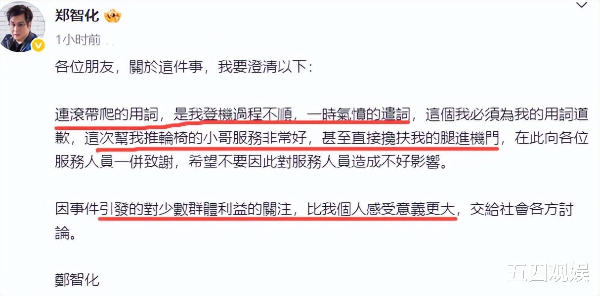 郑智化强调自己一时气愤上头,可是在深圳机场公开道歉完,他又连续发表了两篇“小作文”,打击范围不仅有深圳机场,还有大陆的很多旅游城市机场;而且使用的形容词极其强烈:世所罕见、脑洞大开!