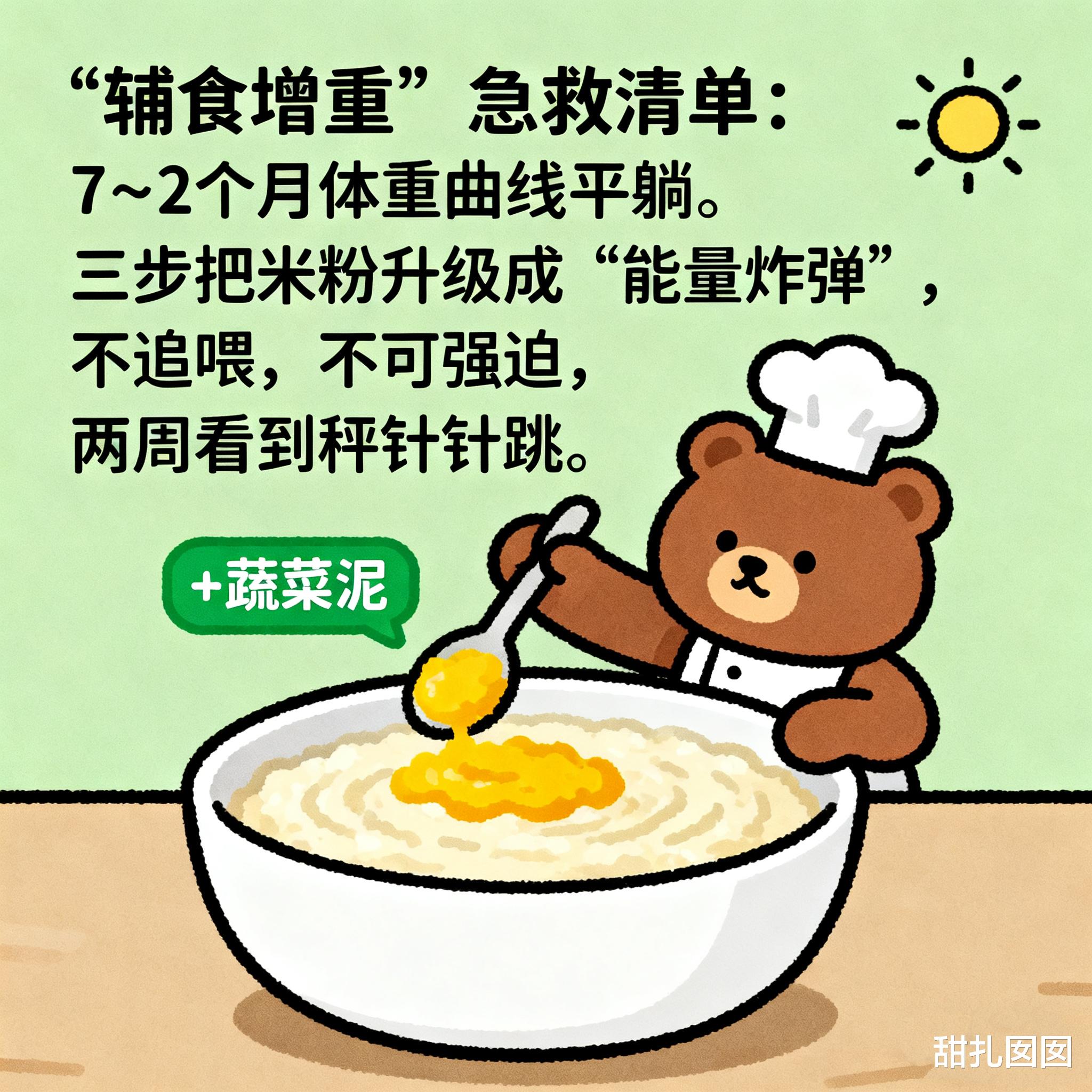 "明明一口气能喝180ml奶,一吃辅食就抿嘴,体重一个月不动秤"——如果你正卡在7~9个月的"增重平台期",先别急着换"高能量奶粉"。崔玉涛医生反复强调:辅食阶段体重滑坡,80%是"能量密度"与"咀嚼力"没对上号,而不是孩子天生"瘦体质"。今天这份"急救清单"零表格、零硬广,手把手把普通米粉升级成"能量炸弹",让秤针自己跳。