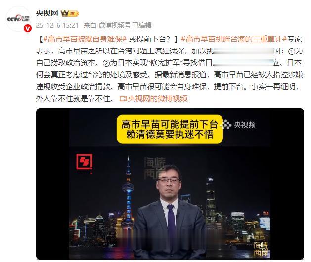 12月6日晚,话题 #高市早苗被曝自身难保# 冲上热搜,引发关注。