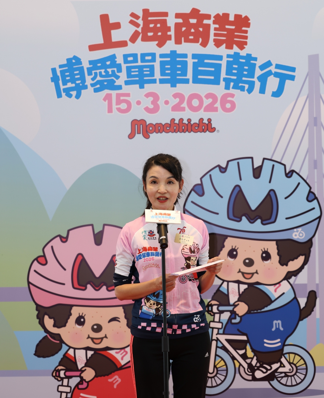 博爱医院董事局主席黄晓君女士致辞时表示,衷心感谢冠名赞助上海商业银行连续九年的鼎力支持,并指该活动已成为全港标志性的慈善单车盛事。她介绍,活动将于2026年3月15日举行,今年特别以象征关怀与希望的卡通角色「Monchhichi」作为主题伙伴,并邀得人气偶像Anson Lo担任活动大使,以及「亚洲车神」黄金宝出任爱心之星。活动路线将途经青沙公路、昂船洲大桥、汀九桥等地标,参加者完成挑战后更可参与嘉年华。黄主席强调,是次筹得善款将全数用于博爱医院青少年服务,支援年轻人的心理辅导、职业培训等发展需要,并诚邀全港市民、企业及单车爱好者齐参与,以行动共襄善举。