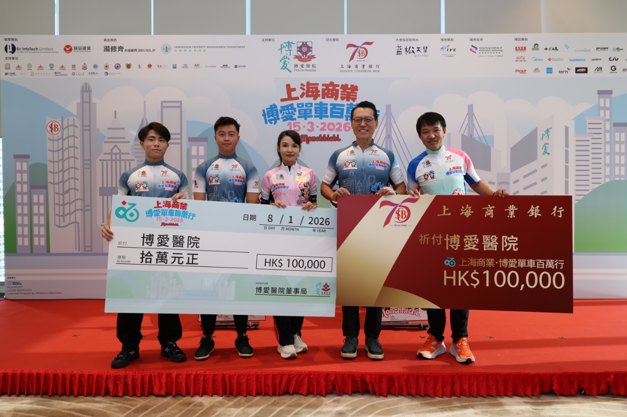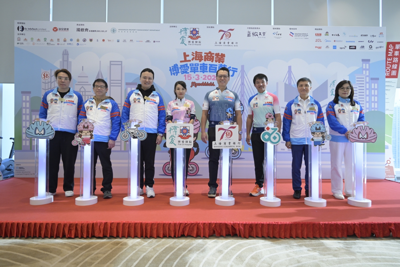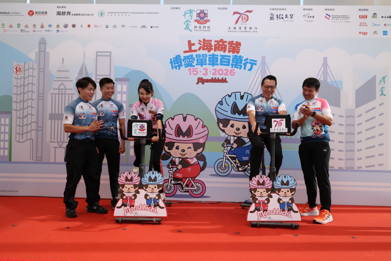 由博爱医院主办、上海商业银行冠名赞助之「上海商业.博爱单车百万行2026」将于2026年3月15日(星期日)在昂船洲大桥举行。这项全港最大型的慈善单车活动去年吸引超过6,000名单车爱好者及善心人士参与,反应热烈。今届活动载誉归来,邀请了香港人气男团MIRROR成员Anson Lo为活动大使;今天(8日)大会邀请到备受喜爱的Monchhichi,联同「爱心之星」三届亚运金牌得主及世界锦标赛冠军黄金宝先生SBS MH,「Star Rider」香港著名的单车运动员吴保利先生、李恩浩先生,以及多位嘉宾现身活动发布会,携手为活动掀开序幕,期望吸引更多人一同参与这个阖家欢的大型慈善单车活动,于筹募更多善款之同时,并宣扬环保健康生活、及加强香港市民对单车安全之意识!