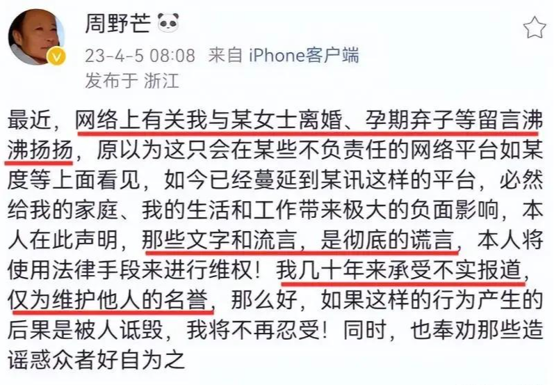 直到这时,公众才恍然大悟,当年周野芒在月子期间坚持离婚,并非因为他“有了新欢”或“不负责任”,可能是因为他发现了妻子婚内出轨并怀上他人孩子的真相。