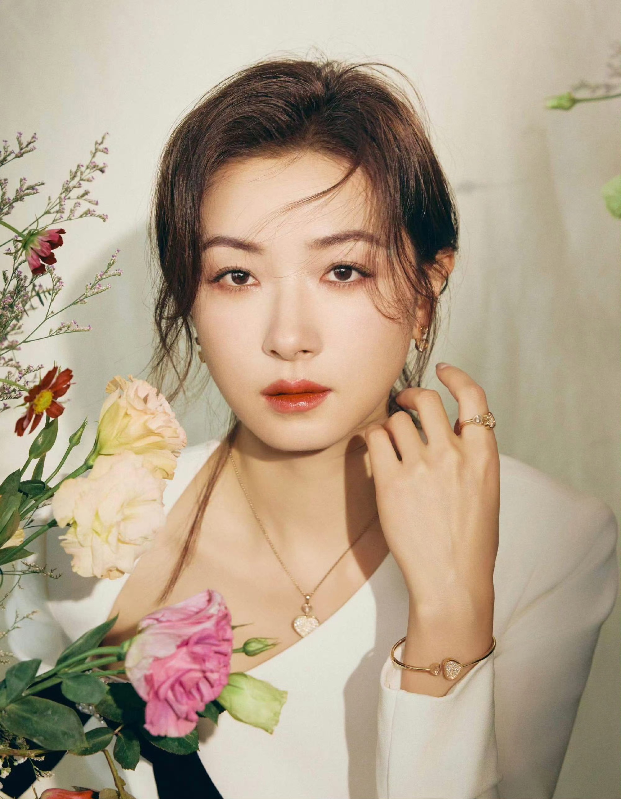 万茜白裙妆造,清冷酷美