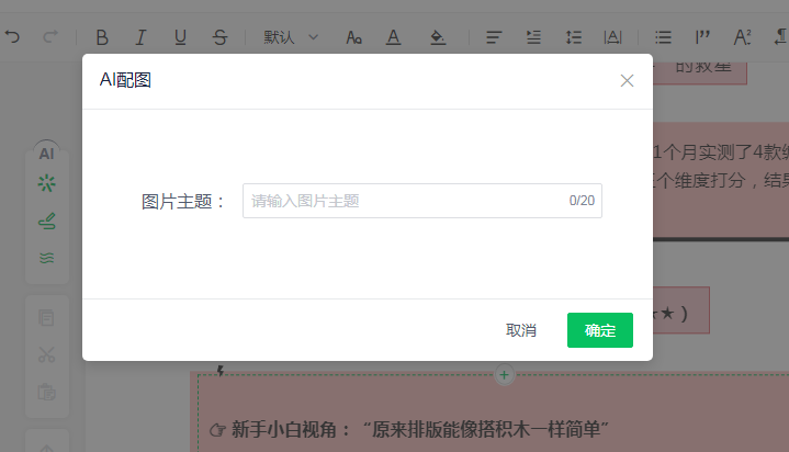 AI配图:输入“职场办公桌”,自动匹配3张正版无版权图片,不用再去搜图网站折腾,省了40分钟(以前找图总担心侵权,现在直接用编辑器自带图库,安全感拉满)。