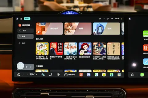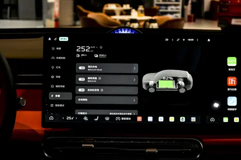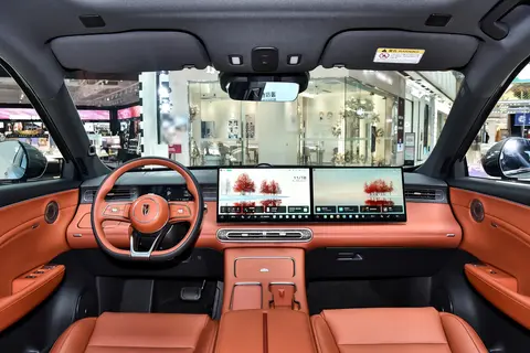 进入车内,首先感受到的是满满的科技感和豪华感,而且所有的设计都围绕着实用性展开,没有多余的花哨配置。内饰采用了大量的软性材质包裹,触感细腻,中控台、门板等经常接触的地方都用了皮质材料,档次感十足。内饰的颜色搭配也很温馨,浅色系为主,搭配木纹饰板和金属饰条,营造出舒适、居家的氛围。智能座舱是这款车的一大亮点,全系标配15.6+15.6英寸的2.5K双联屏,再加上全液晶仪表屏和30英寸的AR-HUD,总共四块屏幕,形成了全方位的显示系统。屏幕的显示效果非常清晰,2.5K的分辨率让画面细节丰富,色彩饱满,就算是强光下也能看得很清楚。屏幕的边框很窄,屏占比达到了88.5%,视觉效果很震撼。这四块屏幕不是孤立的,而是可以充分联动。比如导航信息可以从中控屏同步到AR-HUD上,箭头直接投射到前方路面,跟着箭头走就能准确找到目的地,不用低头看屏幕,大大提升了行车安全性。副驾的屏幕还能独立播放视频、听音乐,而且不会影响主驾的导航和操作,长途旅行的时候,副驾的家人可以看电影解闷,孩子也能在上面看动画片,再也不会因为无聊而吵闹。