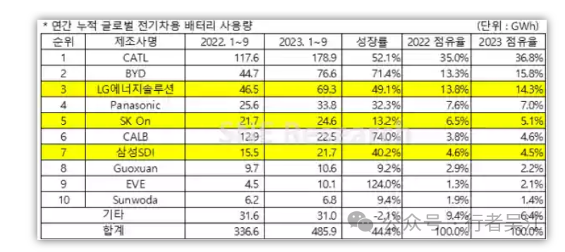 动力电池,作为新能源车最重要部件,其成本已经占到整车的40%以上,因此成为全球相关厂家必争之地。经过多年的血拼,已经形成了中韩日三国鼎立态势,其中中国企业市场占有率高达62.9%,中国企业六家:宁德时代、比亚迪、中创新航、亿纬锂能、国轩高科、欣旺达。韩国企业三家:LG新能源,SK On,以及三星SDI,日本企业为松下一家。