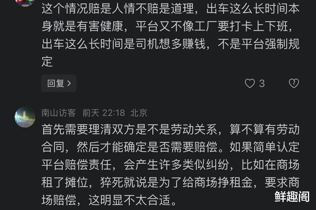 对于这样的结果,家属自然表示质疑,同时还质问平台:“难道这不是在上班吗?”而且也觉得这么处理非常不合理,平台称是合作关系,事实上司机却没有自主权。如果这个标准始终是平台说了算,那么它就是不合理的。对此,大家怎么看呢?