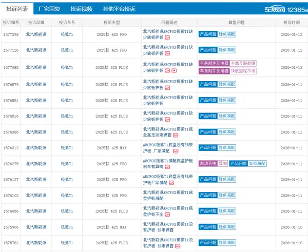 据快科技报道,近日,汽车第三方投诉平台车质网集中出现一批针对北汽极狐T1车型的投诉,数十位车主反映2025款极狐T1存在"底盘减配护板,高压线束裸露在外"的问题。据悉,该车型作为北汽极狐的销量支柱,此前凭借高续航、大空间等优势市场表现亮眼,此次集中投诉使其陷入质量争议。