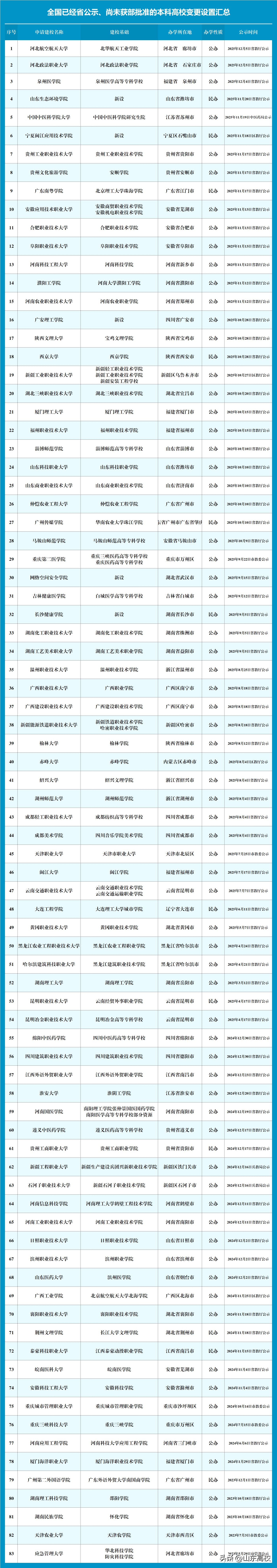 截至2025年12月,全国又攒下83所已经省级申报公示、待教育部批准的本科高校。