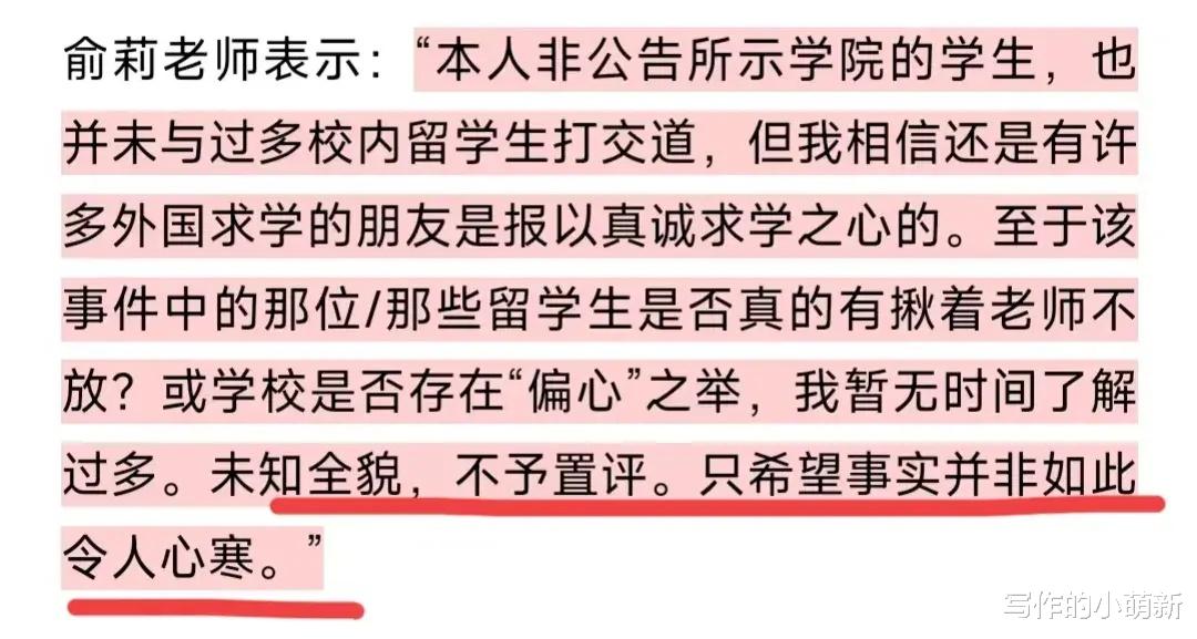 希望在接下来的时间里,南方医科大学能够重新审视和处理这起事件,给予俞莉合理的理解和支持,也希望通过这样的事件引起更多人的猜想和关注,让生命至上的理念能够在每个人的心中生根发芽,成为我们共同努力的奋斗目标。