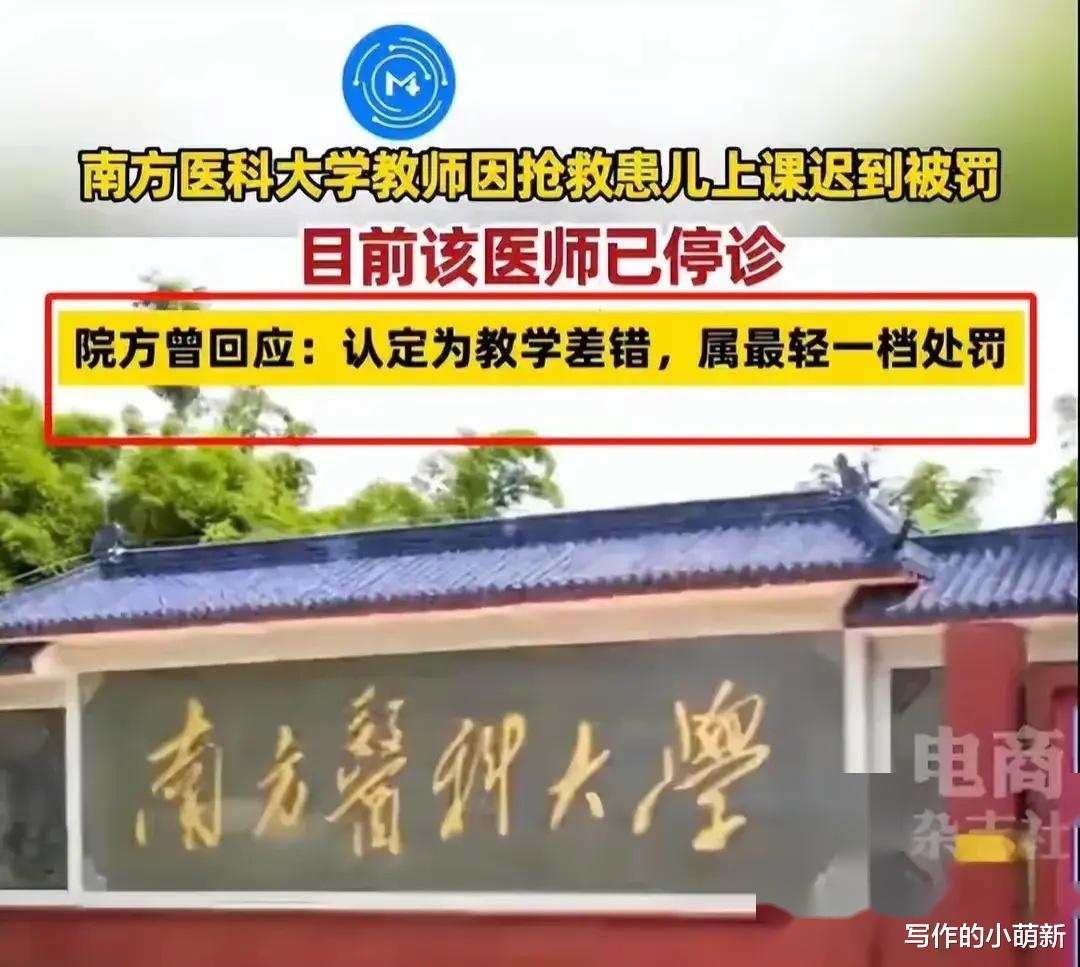 前言最近,一则关于南方医科大学一位教师因抢救患儿迟到29分钟遭到学校通报批评扣钱取消评优资格的新闻引起了热议。据报道,该