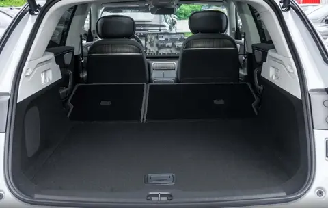 接下来简单说一下车辆的储物空间。后备厢标准容积为410升,现场演示中能轻松放下多个20英寸的行李箱,整体空间确实相当宽敞。不过,朋友认为后备厢空间可能是这款车稍显不足的地方,毕竟许多同级别车型的后备厢容积都达到了500升以上。但对我个人而言,410升的容积已经足够,日常使用中并没有太多大件物品需要装载。而且,车辆的后排座椅支持放倒,放倒后后备厢容积可扩展至974升,这已经解决了很多空间需求问题。