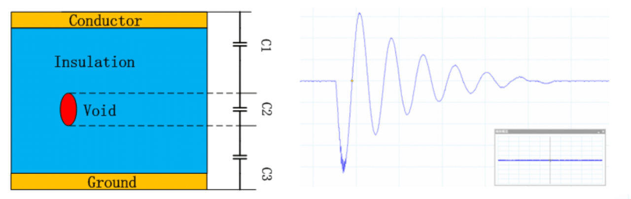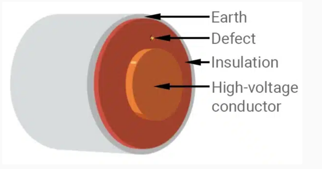 下图1显示了一段电缆的横截面视图。高压导体和接地之间的绝缘层中显示的缺陷可能导致内部放电: