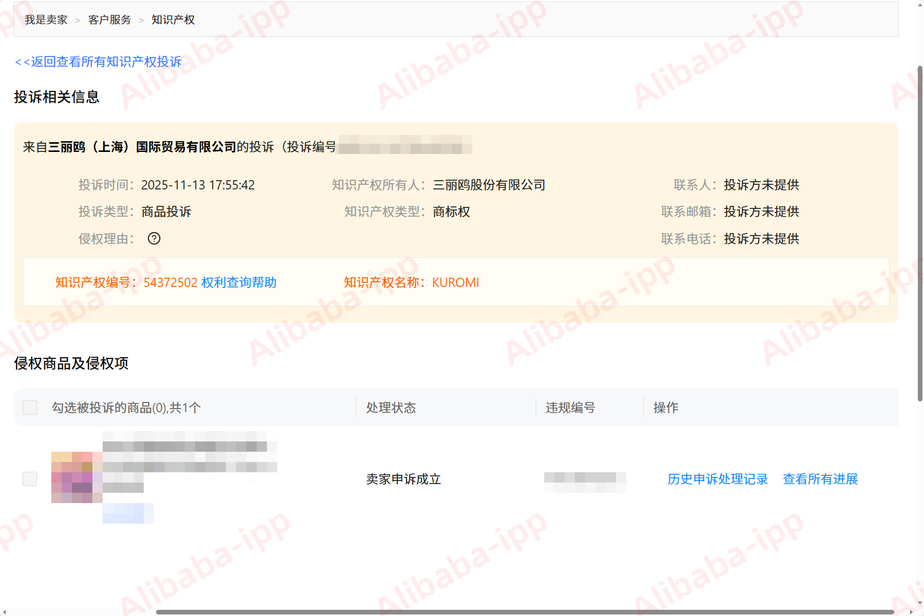侵权理由:商品投诉