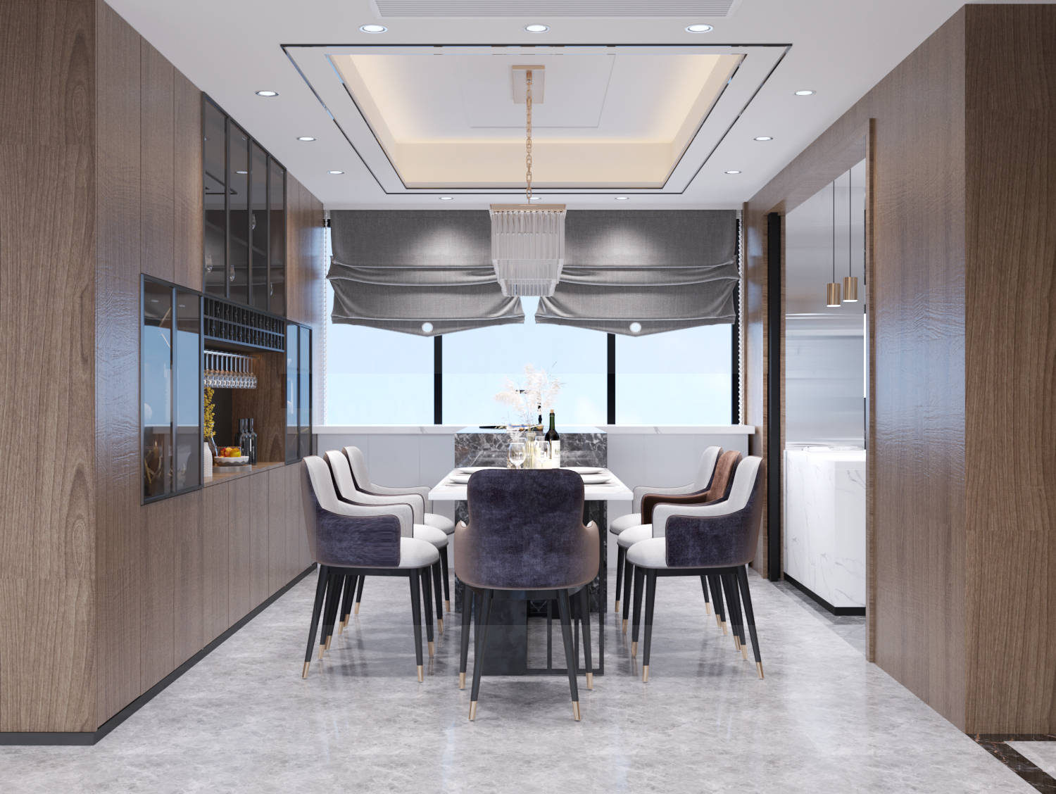 家具变形计:虹口区案例中,餐桌下拉出可伸缩面板,秒变6人位聚餐台