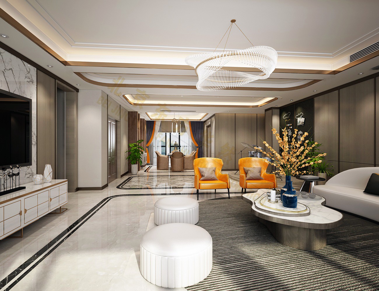 灯光洗墙术:黄浦案例中,用隐藏式灯带勾勒天花板,层高瞬间提升30cm