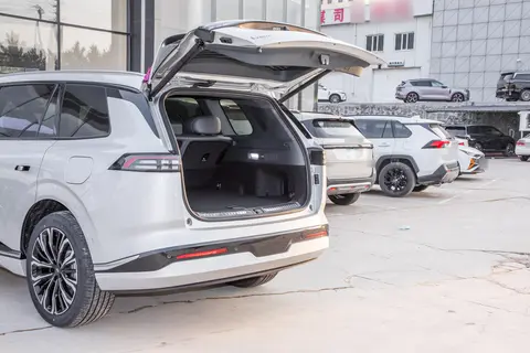 外观设计上,这款车型延续了品牌简约大气的风格,同时在细节处融入家用属性。新增的仙踪绿车漆采用 8 道涂层的高透清漆工艺,漆面厚度达 120μm,不仅视觉上呈现出自然清新的质感,还具备更强的抗刮擦能力,日常小剐小蹭不易留下明显痕迹。整车尺寸为 5002mm×1972mm×1732mm,轴距 3025mm,这样的尺寸在同价位中大型 SUV 里表现突出,尤其是 1972mm 的车宽,不仅让车身侧面看起来更显稳重,更为车内横向空间奠定了基础。前脸的主动闭合式进气格栅设计巧妙,在增程模式下,格栅会根据发动机工况智能调节开合度,当发动机需要散热时自动打开,反之则关闭以降低风阻;两侧 LED 大灯采用 “星芒” 式光源布局,夜间点亮后辨识度高,且标配的大灯高度自动调节功能,能根据载荷变化实时调整灯光角度,避免对向车辆眩光。车身侧面的 21 英寸高强度铝合金轮毂,采用轻量化设计,单只轮毂重量较普通钢制轮毂轻 3.2kg,有效降低了簧下质量,提升了底盘响应速度;轮胎规格为 265/45 R21,宽胎设计不仅增强了抓地力,还能通过优化的胎面花纹降低路噪。车尾的贯穿式尾灯与车头大灯形成呼应,尾灯内部的 LED 灯带支持 “流水式” 转向提示,雨天或夜间行驶时,能让后方车辆更清晰地感知转向意图;底部的黑色包围加入了防刮擦涂层,日常停车时轻微磕碰不易损坏,减少了后期维修成本。
