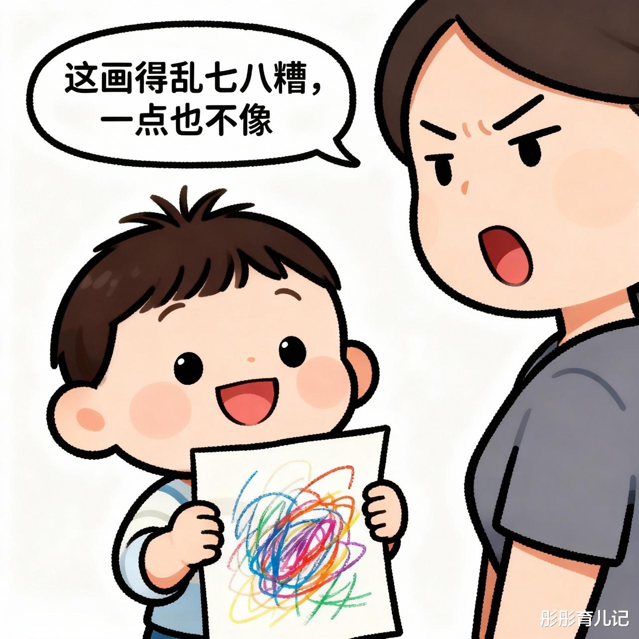 当宝宝满心欢喜地举起刚完成的涂鸦,你却皱着眉头说“这画得乱七八糟,一点也不像”,他眼中闪烁的光芒可能会瞬间黯淡。对幼小的他来说,每一次尝试都是宝贵的探索,粗暴的否定会让他怀疑自己创造的价值。类似的话还有很多,“你怎么这么笨”、“别添乱了”,这些标签像无形的绳索,束缚住他尝试的勇气。