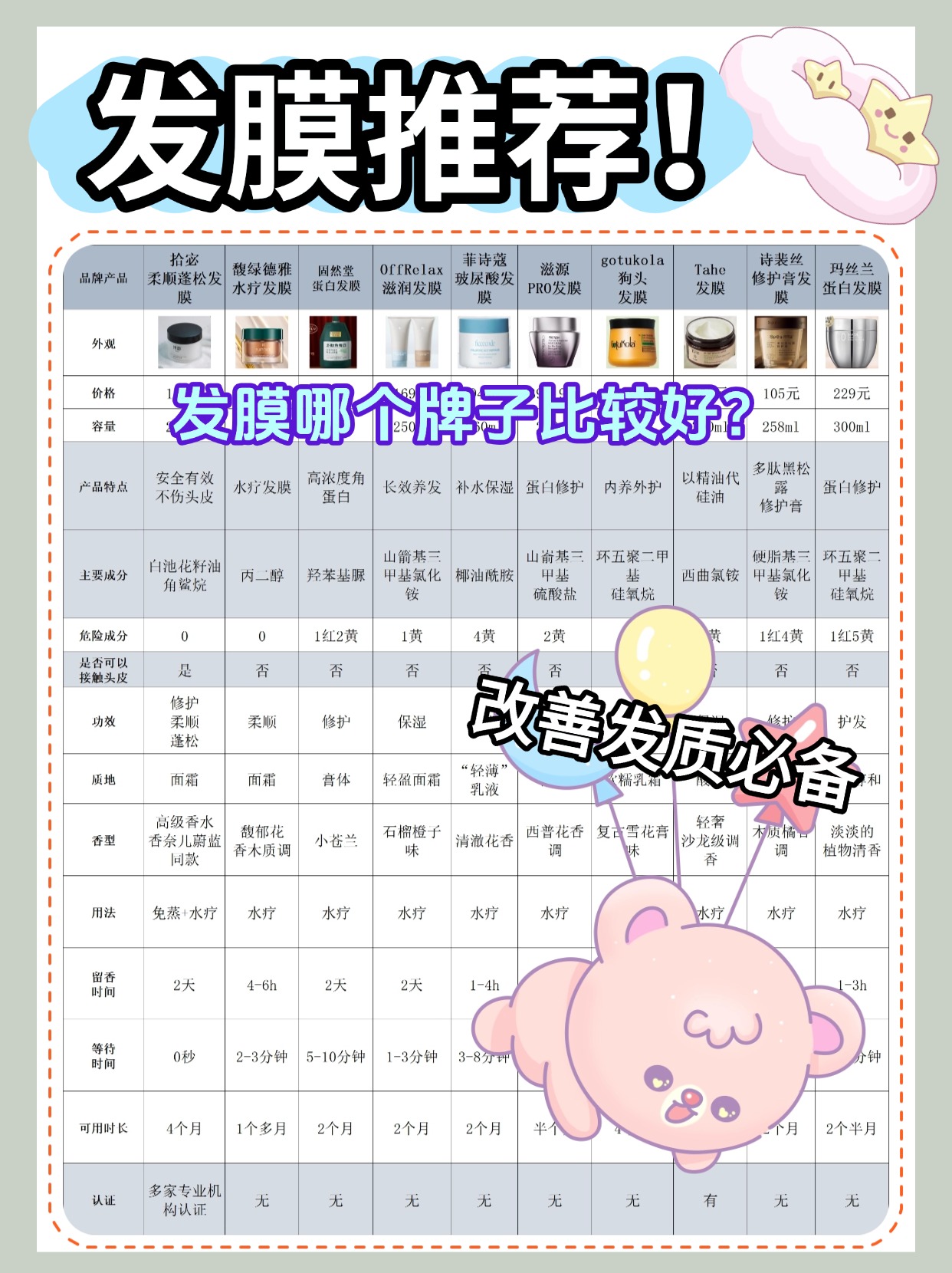 经常有姐妹问什么发膜柔顺效果好,先跟大家解答两个高频问题:发膜能改变发质吗?头发分叉怎么解决?优质发膜长期用是能改善发质的,能修复受损毛鳞片,让头发从毛躁变柔顺,但要坚持用,指望用一两次就彻底改变是不现实的。头发分叉的话,除了定期修剪,选对发膜也很重要,要选含修护成分的,能减少新的分叉产生,不过已经分叉的发丝是没法复原的,只能靠修剪。还有人问发膜需要洗吗?必须洗!发膜是修护产品,不是免洗的,不洗干净会有残留,让头发变油、打结,甚至堵塞头皮毛囊。选柔顺效果好的发膜,别只看宣传,要关注成分和质地。下面是我总结的发膜选购注意事项,针对柔顺效果款的避坑点都整理好了,干货满满可以先赞收藏。