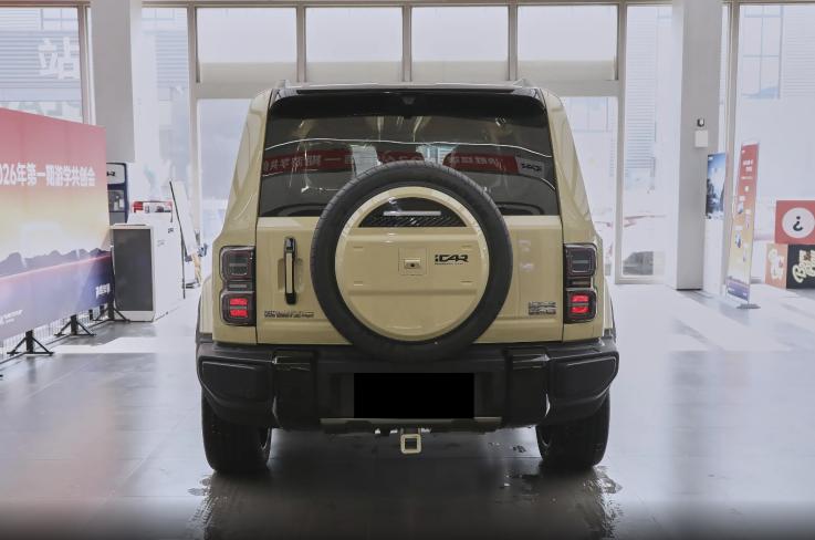 iCAR V27的外观若你见了可能也会误以为是“海外汽车品牌”又出了新款。但事实上,这一套设计语言更接近上世纪复古硬派越野车的风格,其融合了诸多经典硬派越野车的设计元素,比如圆形LED大灯、侧置独立黄色转向灯、加粗前保险杠等等,隆起的引擎盖筋线使整体看起来更显时尚精干。窄条幅前格栅搭配方形灯腔,辅以环形灯带设计,突出了新能源硬派越野SUV的辨识度。