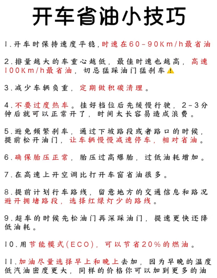 新车开车省油小技巧!