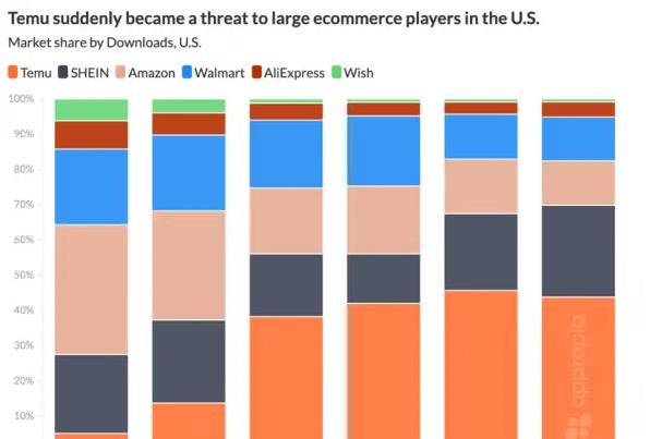 统计机构GWS调研发现,从2023年4月到7月,亚马逊美国日活用户数量减少了800万;相比之下,Temu已经成了最受美国用户欢迎的APP。