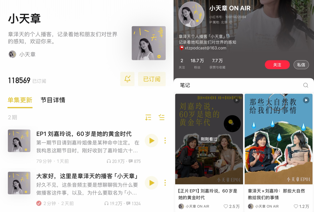 正因如此,章泽天的播客若想持续吸引听众,强化内容策划与主题设计将是关键。
