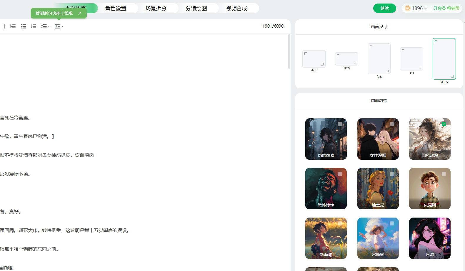 全链路创作体验:从小说到剧本,再到视频制作,一个平台创作,省了来回切换平台的麻烦。