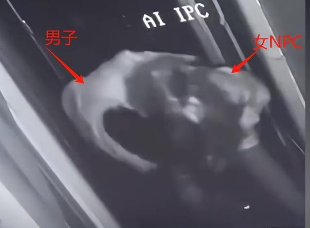 与这些顾客进行互动当走到一位男子面前令人想不到的一幕发生了,他的身后突然跑出来另一位男子趁着黑以非常快的速度,一把抱住这位工作人员一边顶这位女生的屁股一边往墙边推。