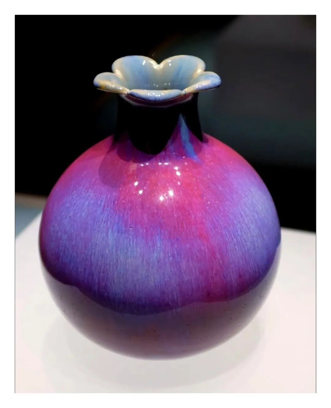 而唐英在景德镇的实验室里不断试验,最后烧出了“炉钧釉”——一种并非钧窑却能达成钧窑成效的瓷釉。