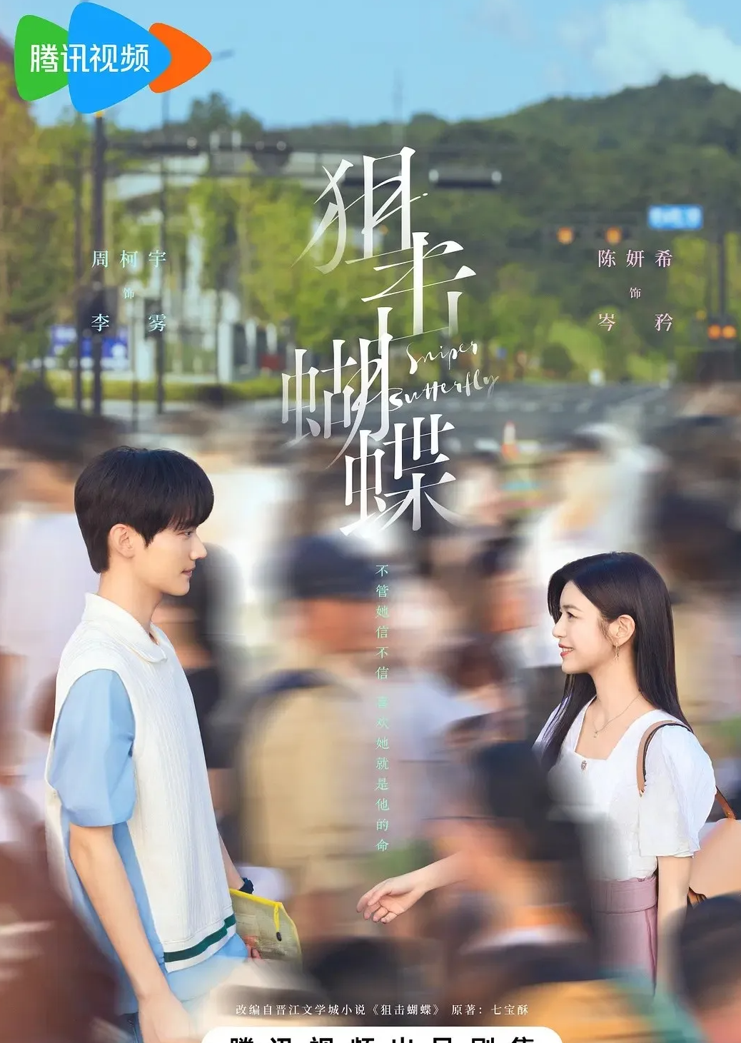 《狙击蝴蝶》的男主角是李雾,由周柯宇饰演;女主角是岑矜,由陈妍希饰演。