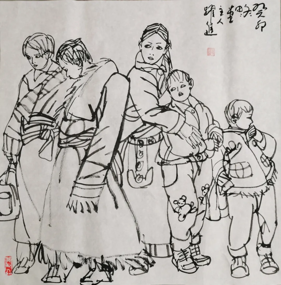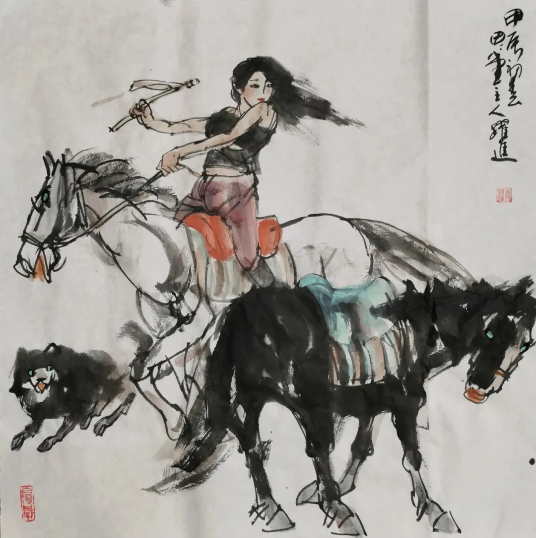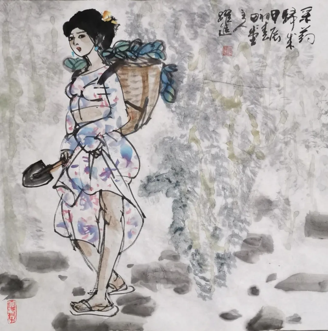 孙跃进先生精心研习书画艺术,无俗利之逐取,无虛名之追求,亦不以绘画而谋生活,所以他的丹青修炼,完全是出于修身养性,陶冶情操的目的。目的纯粹,画风超脱。纵观他的绘画作品,无一例外,都显发着丹青无挂碍,清许质如泉的透彻与明净。他毕业于中央美术学院徐悲鸿画院研修班,有着深厚的笔墨理论涵养,所以对外师造化中得心源法则理解特别深刻,实践特别执着。观人物姿态,心穷万物之源,不但是他的艺术目标,也是一-场永无止境的丹青修行。他能沟通心源与造化的双向对流,别人熟视无睹的人物景象,可以成为他描述人物造意的心灵感触。