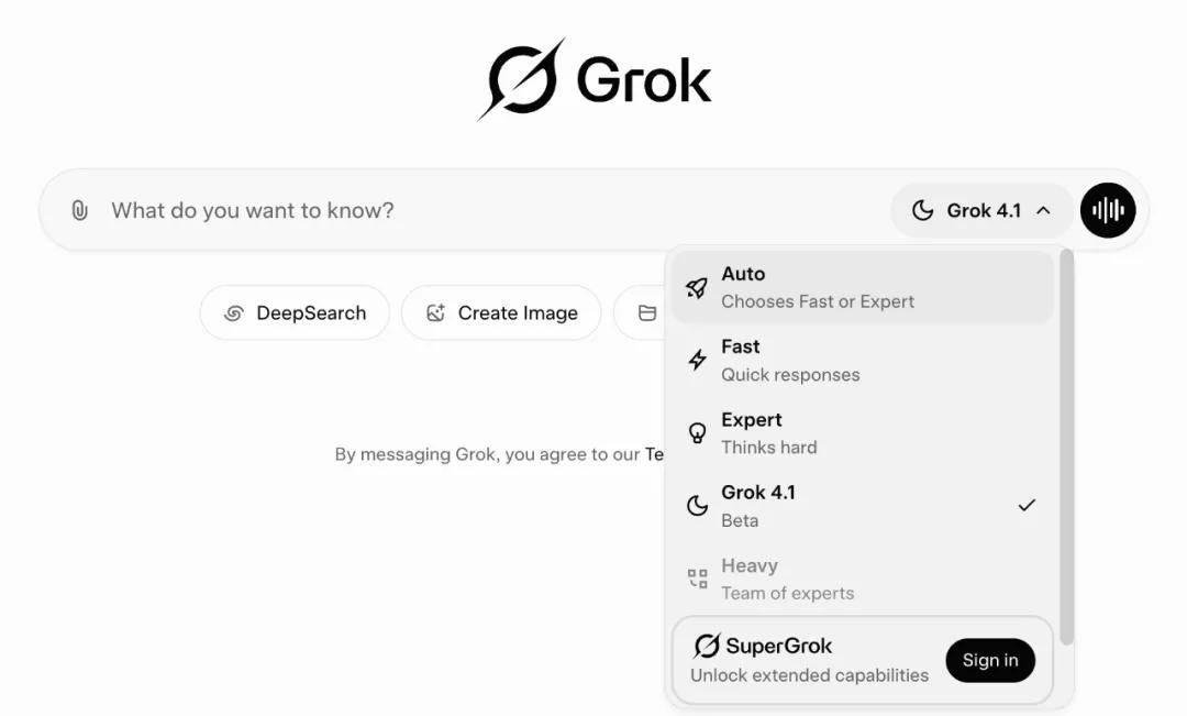Grok 4.1将立即在 Auto 模式中推送,并可在模型选择器中手动选择。