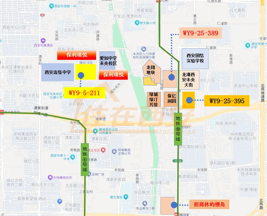 该宗地西侧是西安高级中学,北侧是保利未央璞悦、东边是在建的爱知中学未央校区。周边有地铁4号线、10号线、红旗铁路公园,龙湖未央天街、西安中医医院等配套加持。