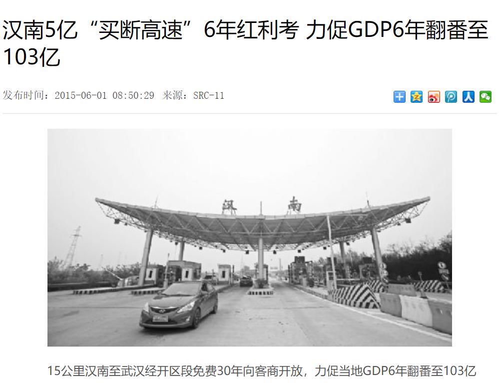 在2009年,汉南一鼓作气,花大价钱买断了汉洪高速剩下收费年限的经营权,实行点对点免费政策,成为了第一个吃螃蟹的人。