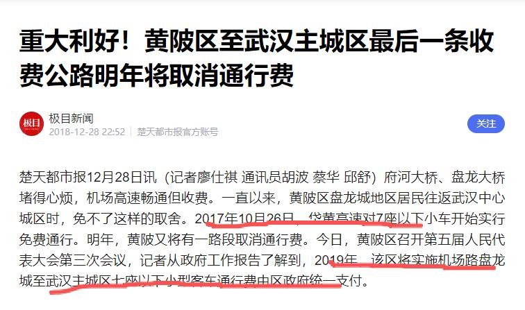 于是2017年黄陂开始为岱黄高速7座以下刷etc客车的通行费买单,2019年对机场高速盘龙城到汉口方向也采取一样的模式,这才是大家口中“刷ETC”免费的真相。