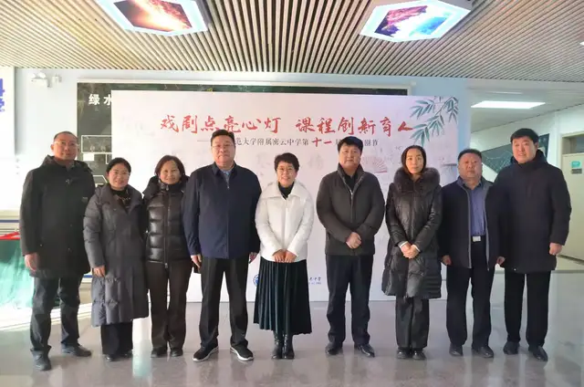 灯光璀璨,掌声如潮,岁末年初。12 月 30 日上午,首都师范大学附属密云中学第十一届校园戏剧节在格智楼五层盛大举行。本届戏剧节以 “戏剧点亮心灯,课程创新育人” 为主题,既是一场视听盛宴,更是学校将美育教育与课程创新深度融合的生动实践。作为北京市普通高中特色课程,学校“小剧大成 —— 多元融合体验式教育戏剧课程”已走过十载春秋,学校从“延伸阅读演名著”到“加工创作出原创”,再到“深挖地域成特色”,以“人人参与、地域赋能、戏剧育人”为鲜明特质,持续变教育戏剧资源“存量”为创新人才培养“增量”。十年实践中,学校坚守全员性、自主性、选择性、实践性原则,摸索形成”一品二创三磨四演五升“的课程实施路径 —— 品原著学经典、创剧目出原创、磨作品成精品、演剧目登舞台、升水准育人才。