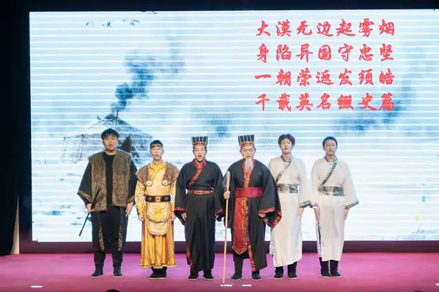 课本剧《苏武传》。北海的冰雪封得住万里归途,却封不住一颗向汉的心。十九载风霜蚀骨,旌节褪尽毛羽,苏武以一身傲骨对冷月,用半生坚守昭忠魂。这曲千古传颂的忠诚与气节之歌,在今日的舞台上再度唱响,同学们用极具张力的表演,将教科书中的文字化为鲜活的生命叙事,让我们在经典重现中,触摸历史的厚重,感受古人的忠义与执着,让忠诚与坚守在当代学子心中激起回响。