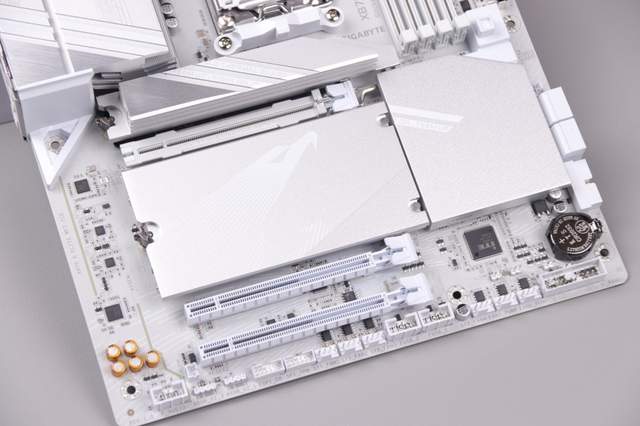X870M AORUS ELITE WIFI7 ICE 冰雕采用纯白色风格,适合白色海景房用户,当然,这款主板在用料性能上也不会让你失望。供电上,采用了16相CPU供电,2相核显供电和2相辅助供电,搭配双8 PIN供电接口,即使是9950X,也能轻松驾驭。