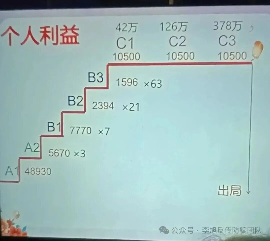 模式:该传销项目打着“民间金融”“川陕商务商会团队”“中部崛起扶持”等旗号,以各种名义将人骗至恩施某酒店进行洗脑,鼓吹投资48930元加入该组织,通过发展下线,出局可以获得510万元的回报。